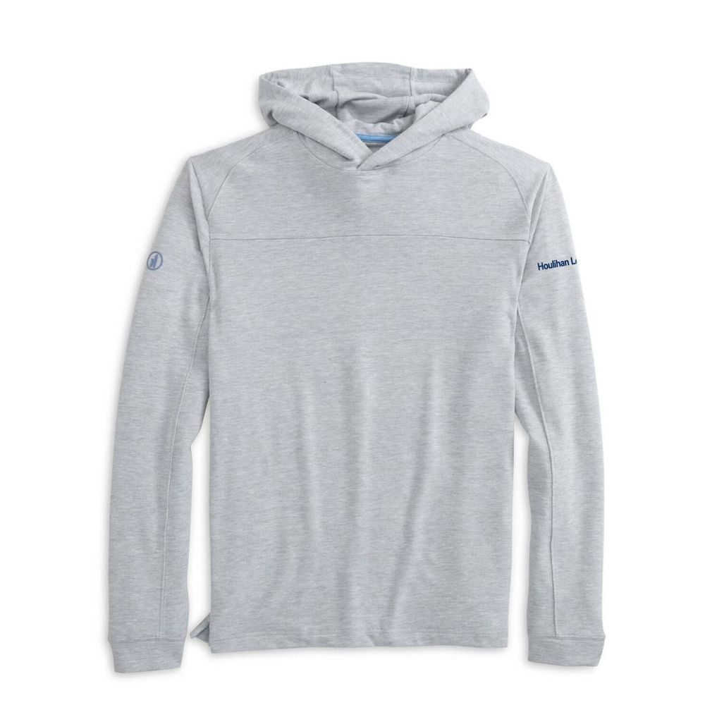 Lightweight performance french terry 4 way stretch hoodie pullover. Split tail. 62% polyester / 32% rayon / 6% spandex mélange. UPF 50 sun protection